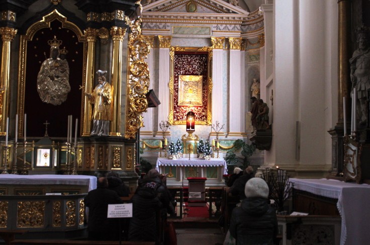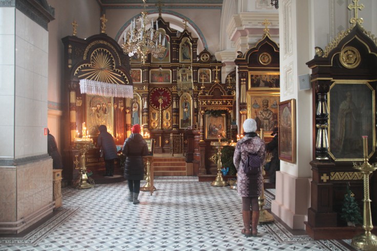 I love churches, and I love worship places in general. When I go on holidays with my friends I usually go « churching » which is really annoying for everyone but me. Usually, after one or two places, they get tired of it and leave me behind. I’m sorry! It’s stronger than me! And in Grodno, I was very happy because… There are a lot of churches! And of different kinds : Orthodox church, Catholic church, Protestant Church… Even a Synagogue (which is under reconstruction, but the rabbi allowed us to visit it, even late at night) (how nice) (okay we may had to contribute financially too) (but still). I was able to tell Marie, look, it’s another type of church. So we have to visit it. Anyway, there is not so much else to visit in Grodno on a 12th January. And there is no wind inside. So…