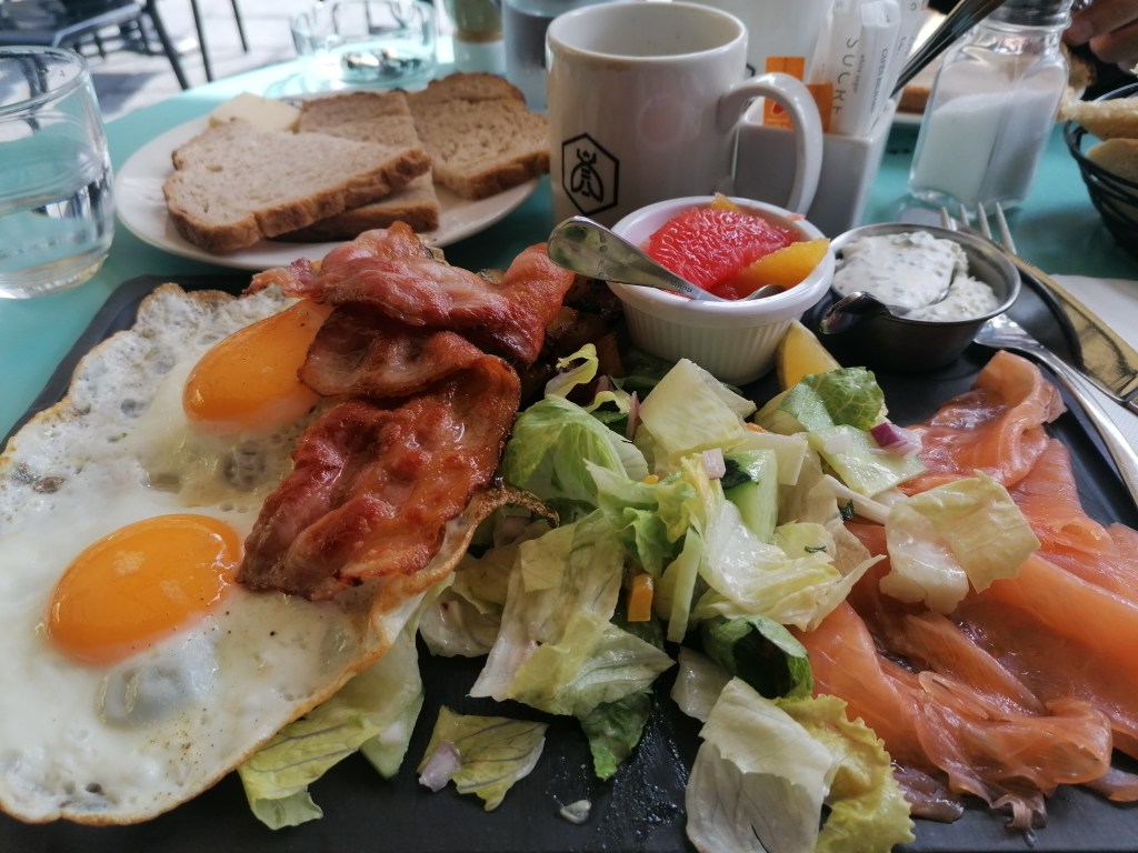 Déjà, on a été surpris du prix : seulement 13,50 euros pour au choix : une assiette super bonne hyper remplie très brunchesque, ou alors, un burger un peu moins brunchesque pour le coup mais qui fait bien plaisir après une nuit de folie ! Avec un petit café en plus vous en avez pour 15 euros tout rond et vous êtes prêts pour aller faire la sieste dans l’un des parcs de la capitale.