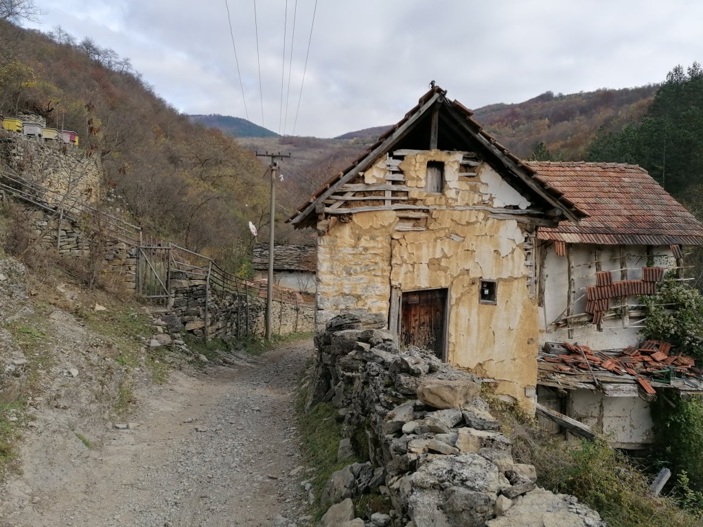 A la recherche des fameuses maisons aux toits de pierre, nous comprenons bien vite que nous marchons en réalité juste à côté d’elles, rendant ainsi difficile leur observation. Un conseil, donc, pour votre visite prochaine à Gostuša, si vous souhaitez avoir la vue « carte postale » (si celles ci existaient), rendez vous de l’autre côté de la rive pour pouvoir mieux apprécier le paysage. La particularité des maisons de Gostuša réside dans le fait qu’elles ont été entièrement construites en pierre et matériaux naturels. En effet, sa situation en pleine montagne en fait un lieu toujours isolé où les habitants ont du se débrouiller avec ce qu’ils avaient à proximité pour construire leurs maisons. Le manque d’infrastructure et d’accessibilité a ainsi paradoxalement permis au village de se préserver d’une certaine modernité architecturale, tout en le vidant malheureusement peu à peu de ses habitants. Si le village comptait autrefois environ 1500 habitants, ils ne sont aujourd’hui plus que 300 à peine. Mais la tendance commence à changer, puisqu’en 2016 Gostusa a reçu le « Europa Nostra Award » et « Grand Prix of the European Union for cultural heritage« , deux prix permettant la protection de son patrimoine architectural et son développement touristique.
