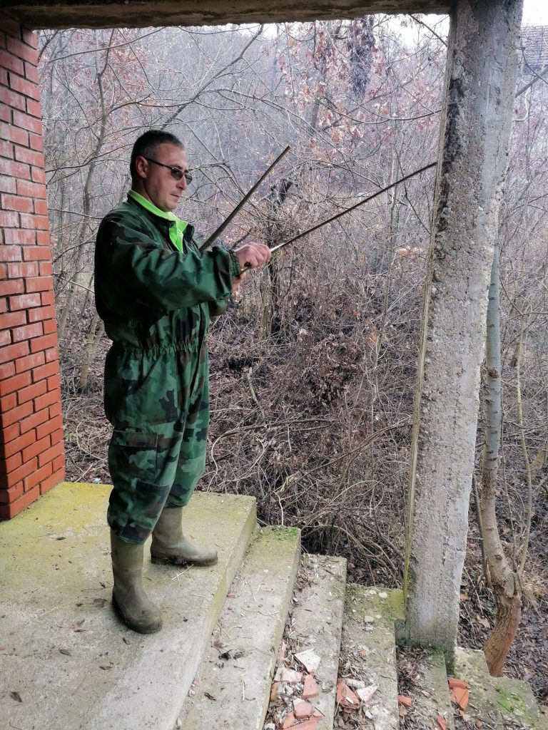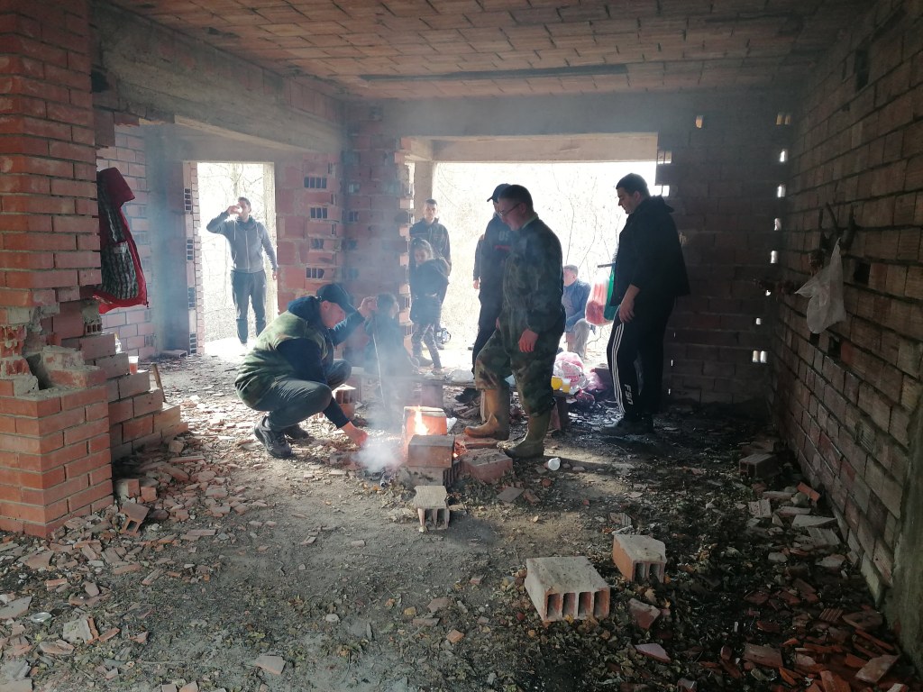 Il est 9h48 quand je bois mon premier whisky (il faut bien se réchauffer un peu) et je me dis que la journée commence quand même plutôt pas mal. Nous marchons ensuite ensemble vers « la montagne« , en gros une petite balade d’un quart d’heure vers une colline, et on établit le campement dans une maison en cours de construction apparemment abandonnée depuis longtemps où mes amis serbes ont l’habitude de se retrouver chaque année. Je pars avec Saša et Andrija par le chemin le moins boueux possible pour récupérer le badnjak avant que l’alcool ne fasse trop d’effet. J’utilise alors une hache pour la première fois de ma vie avec toute l’adresse que vous me connaissez (soit : aucune) à la grande frayeur de mes deux acolytes qui ont peur que je perde une main dans le processus.