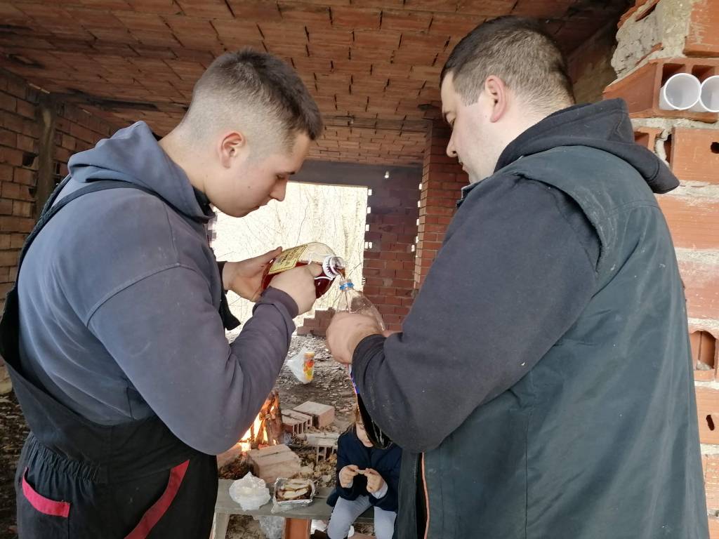 En famille ou entre amis, les Serbes se réunissent donc le 6 janvier, veille de Noël pour faire une balade dans la nature et aller chercher leur badnjak. C’est aussi l’occasion de se retrouver et de passer un bon moment dehors ensemble. Voire un très bon moment si vous ajoutez à cela un bon repas et beaucoup d’alcool comme nous l’avons fait. Car en effet, pour toutes les traditions, il y a la version officielle, et la version un peu plus personnelle que chacun peut adapter. Pour nous, « badnjak » aura notamment rimé avec « apéro-ak« , à tel point que lorsqu’on retrouve notre équipe composée d’une dizaine de personnes, tout le monde a pensé à apporter à boire mais personne n’a pensé à la hache pour couper le badnjak.