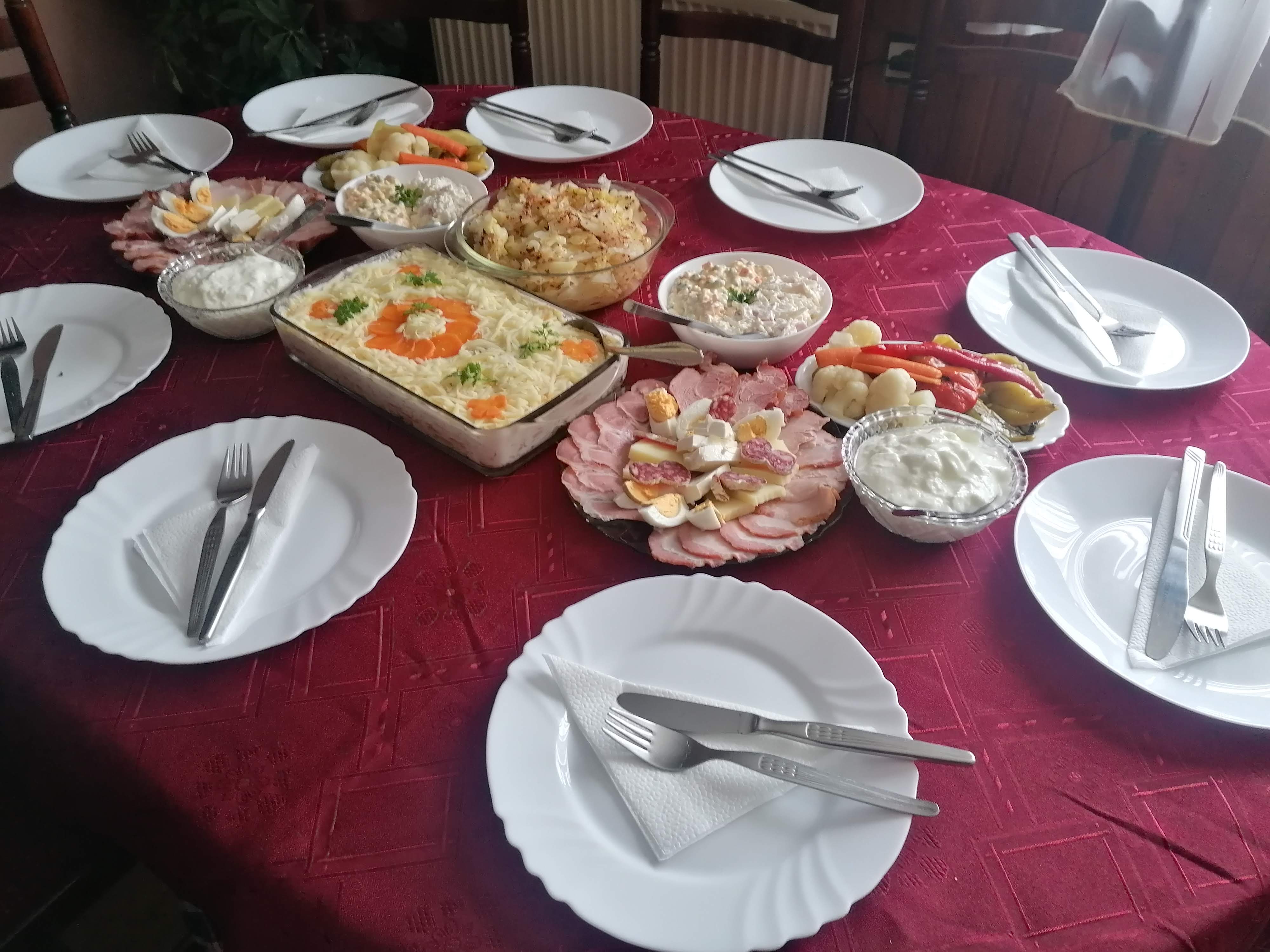 Le 7 janvier, après une bonne nuit, on se lève aux sons des « Hristos se rodi, Vaistinu se rodi! » que tous les habitants de la maison s’échangent, signifiant, le christ est né, oui il est bien né ! (contrairement à Pâques ou on se dit « Hristo vaskrse, Vaistinu vaskrse », ce qui veut dire le Christ est ressuscité, oui il est ressuscité, vous vous rappelez ?). On se souhaite « Srećan Božić« , Joyeux Noël, et on se met à table en famille pour un festin serbe dont votre estomac se rappellera tout le reste de l’année. Au menu, les entrées par milliers : salade mimosa, salade russe, salade spaghettis, turšija, pita, pogača, jambon fumé, kiseli kupus et fromage frais, puis deux grands plats de viande de porc et d’agneau, et enfin en dessert deux énormes gâteaux pleins de crème… Bref vous n’aurez plus faim pour le dîner. Voilà pour le Noël serbe ! A savoir que ce n’est qu’une variante de la tradition et que bien sûr, c’est sûrement un peu différent dans chaque famille 🙂 En tous cas, pour moi qui adore Noël, je suis plus que ravie de pouvoir le fêter deux fois, de deux façons aussi différentes !