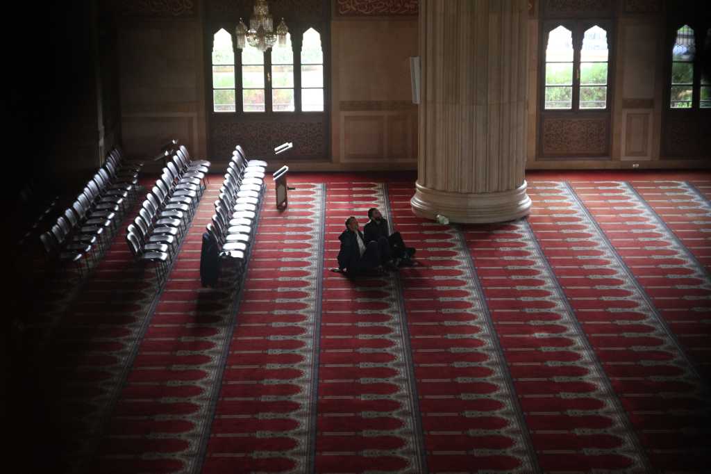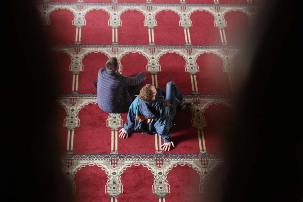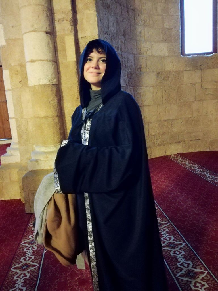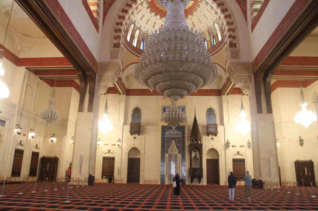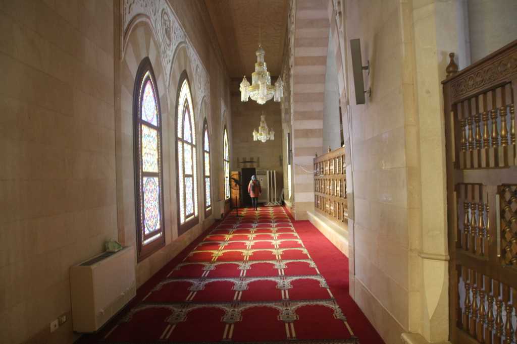 Après notre journée de « pause » (qui n’en était pas du tout une), on repart à la découverte du pays, cette fois-ci direction le sud, vers Saïda et Jezzine. Sur la route, on s’arrête visiter une mosquée qui nous faisait de l’oeil. Contrairement aux mosquées plus touristiques de Beyrouth, cette fois-ci, je ne suis pas autorisée à entrer dans le hall principal de la mosquée : les femmes ont leur propre espace à l’étage, bien grillagé. Je glisse un oeil entre deux espaces de la barrière richement décorée et réussis à voir mes copains bien installés en bas, en grande discussion…