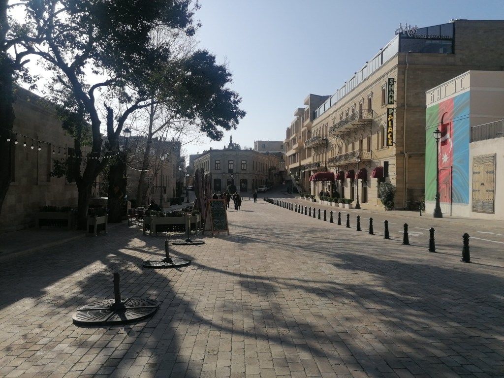 Despite those small similarities that helped me to not be completely lost in my new environment, I have to say that Baku is a quite unique capital city. I didn’t know much before coming as I wanted to keep a bit of a surprise when arriving. And what an interesting place! Firstly, Baku is not one, but two cities: there is the outer city also called « European city », and the inner city also called « Old city » which have two completely different atmospheres. When one has glassy skyscrappers, large streets full of cars and shopping malls, the other has small stone buildings, paved and narrow streets and hidden cute places all around. You are either impressed by the modernity of Baku or charmed by its antiquity.