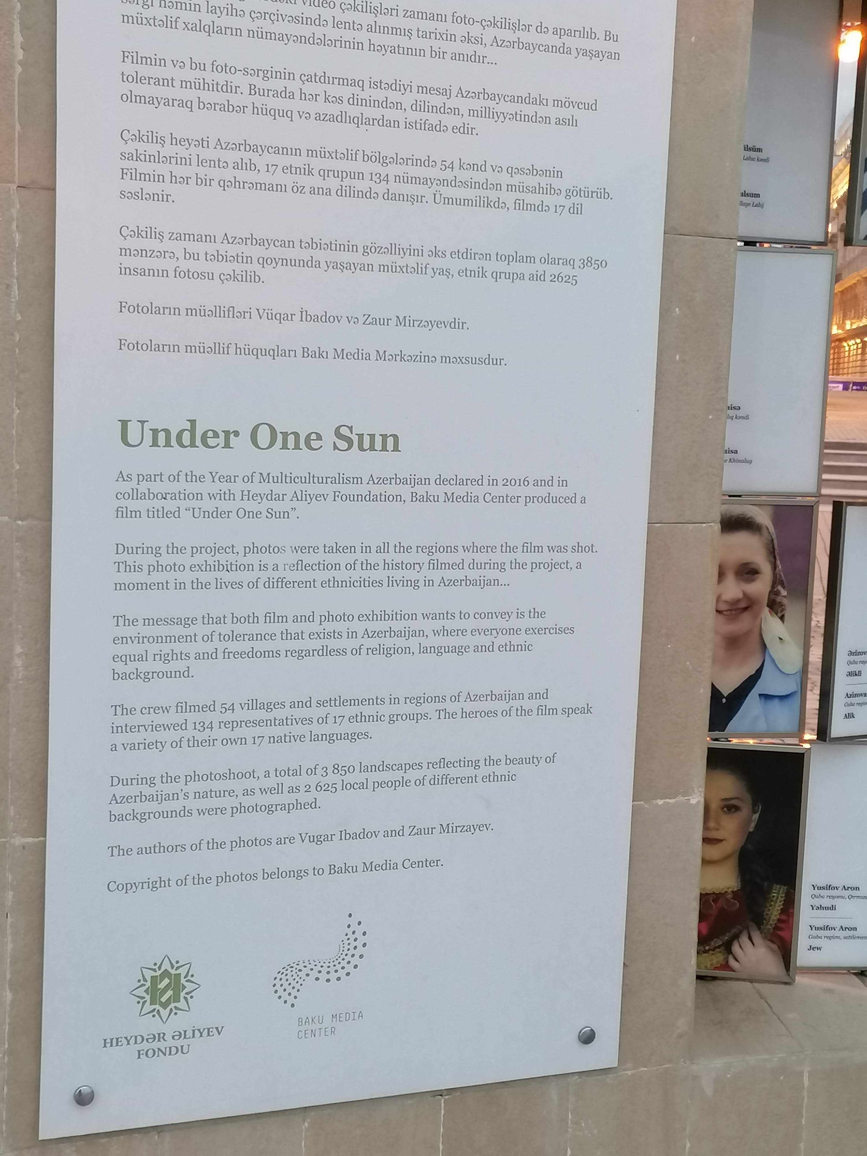You can also find an exhibition on the Boulevard about the project ‘Under One Sun’ that aims at presenting ethnic diversity in Azerbaijan