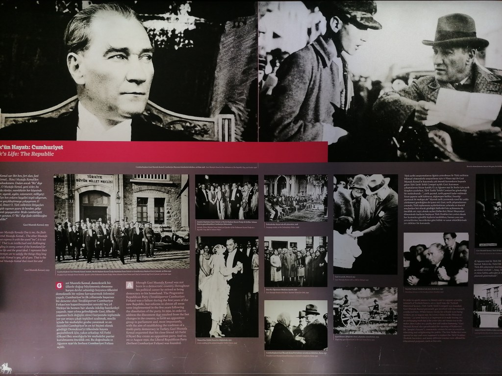 Finalement on décide de continuer à se balader en ville où on tombe sur une rue piétonne assez mignonne entourée de stands de livre et de souvenirs (la rue Şevket Özçelik) et un chouette magasin d’artisanat … Notre dernier arrêt de la journée : le Musée Atatürk ! Ah oui, j’ai oublié de vous dire : Izmir, c’est vraiment LA ville de Atatürk, aussi connu sous le nom de Mustafa Kemal Pasha (Atatürk étant le surnom que les Turcs lui ont donné plus tard et qui signifie « père de la Turquie« ). Ici, Pasha Atatürk est sur toutes les banderoles, toutes les fenêtres, tous les murs, et il a son musée dédié (gratuit !) pour découvrir son histoire. Une visite que je recommande, très intéressante pour découvrir l’histoire de ce personnage considéré comme le fondateur de la Turquie moderne, laïque et unifiée. L’histoire en Turquie retient principalement les grandes avancées du pays qui se transforme alors en République à part entière tout au long des années 1920 et 1930 (Atatürk meurt en 1938) mais il n’est que rarement précisé le prix payé afin de réaliser cette modernisation à marche forcée : mise au pas et assimilation des minorités ethniques, culturelles, religieuses et plus généralement de toutes personnes s’opposant aux réformes parfois radicales du leader. Bref si les Turcs sont aujourd’hui très heureux dans la belle et libérale Izmir, les Grecs se rappellent encore de « la catastrophe de Smyrne » de 1922 qui les as définivement chassés de la région.