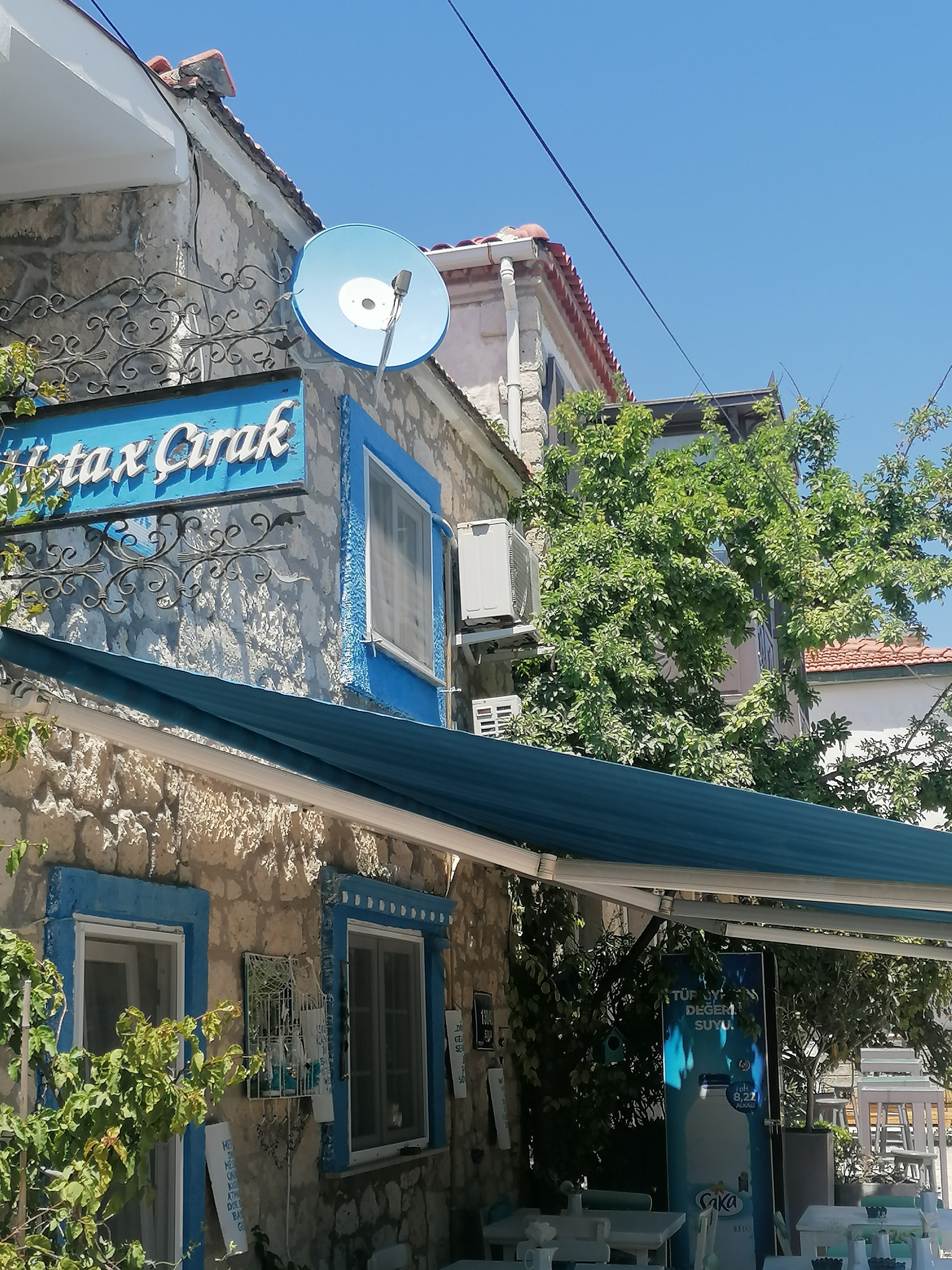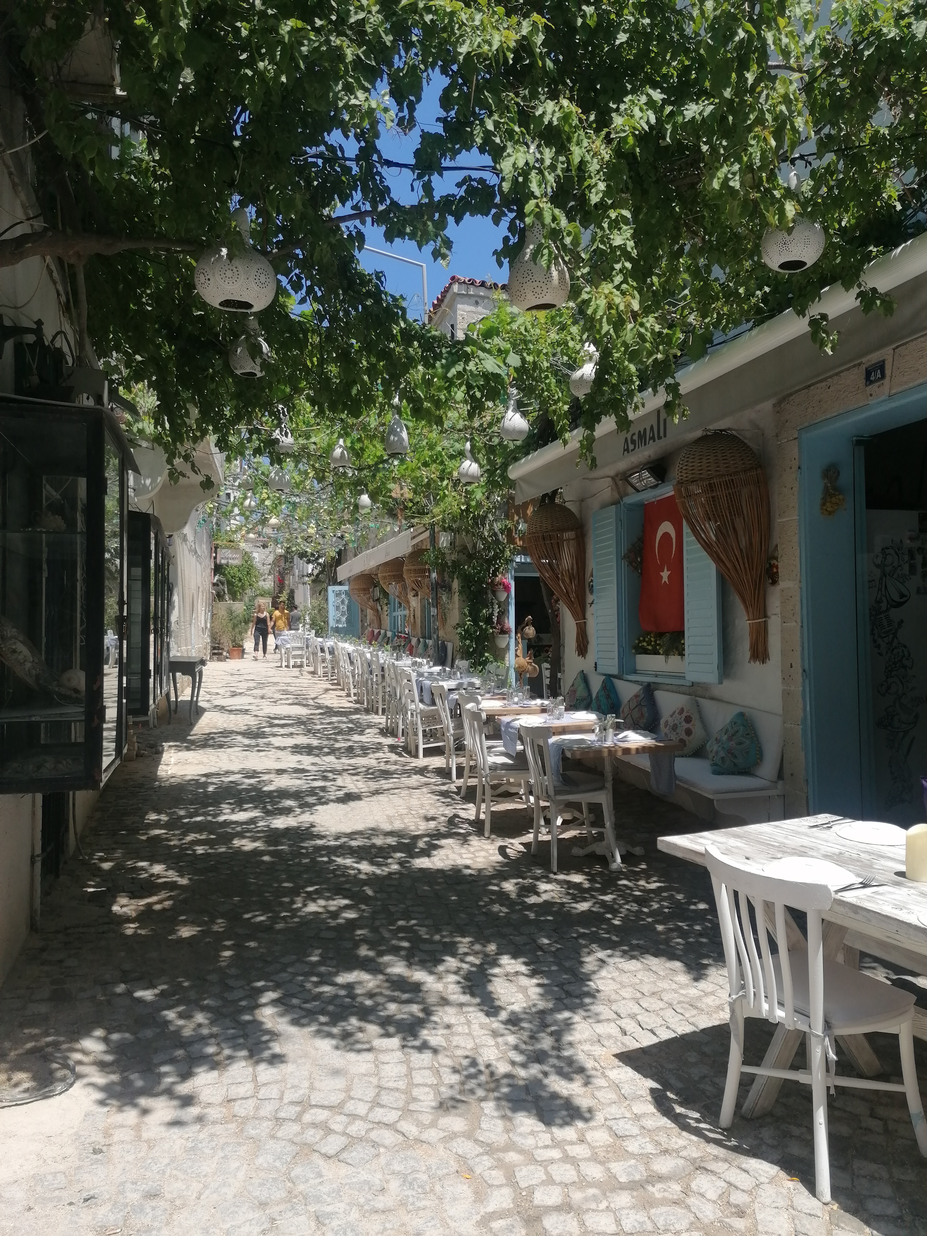 On prend la direction Çeşme mais on descend à l’arrêt Alaçatı où nous déambulons dans une ville composée d’une succession de « boutique hotel » vraiment mignons, de restaurants avec des coussins qui n’attendent que vous, et des boutiques de souvenirs même pas kitsch. C’est très agréable pour se balader en journée même si personnellement je suis contente de ne pas avoir pris d’hôtel ici tant le lieu est à 100% dédié aux touristes (beaucoup d’Azerbaïdjanais d’ailleurs).