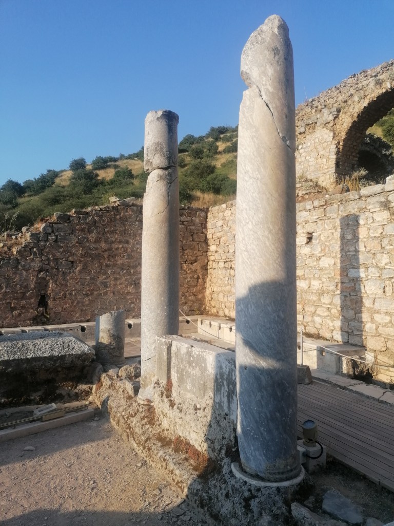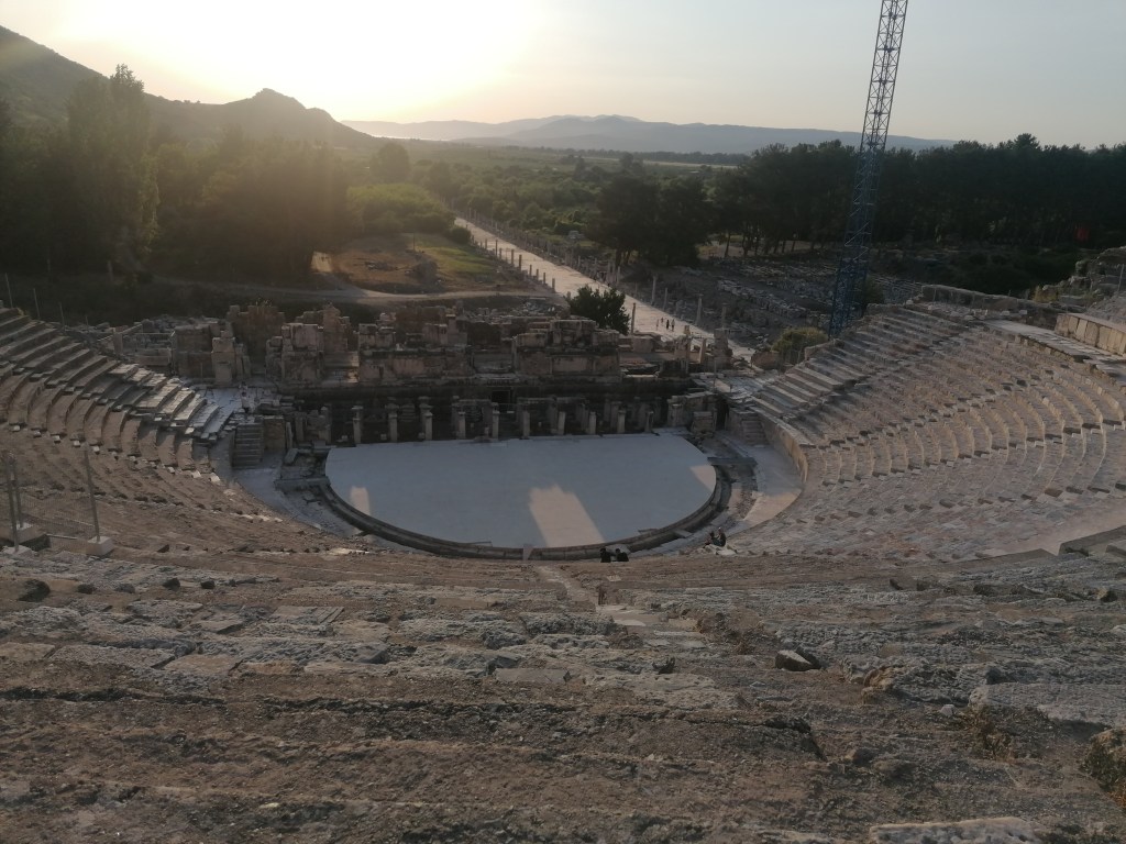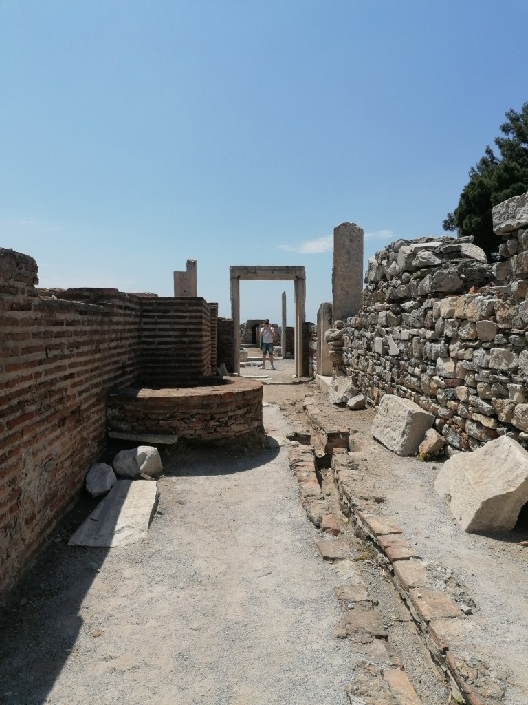 Cette journée sera la plus intense de notre voyage : l’excursion à Selcuk pour aller voir les ruines de la cité d’Ephèse ! Départ à l’aube (genre midi), d’abord en métro puis en train (parce qu’on avait raté la correspondance avec l’autre métro, mais en vrai c’est hyper bien connecté comme endroit et vous pouvez y aller entièrement en métro) et, après environ 1h30 de trajet, on arrive enfin à Selçuk, point de départ de notre journée ! On commence par visiter la Forteresse d’Ayasoluk d’où vous pouvez profiter d’une superbe vue sur la ville, puis la Basilique Saint-Jean, dénommé ainsi car ce serait ici qu’il a rédigé les évangiles et vécu avec la mère de Jésus, et enfin le musée Ephèse plein de trésors archéologiques et dont la visite permet de se faire une meilleure idée de l’histoire de la cité d’Ephèse (et puis faire une pause clim aussi) (et puis la boutique).