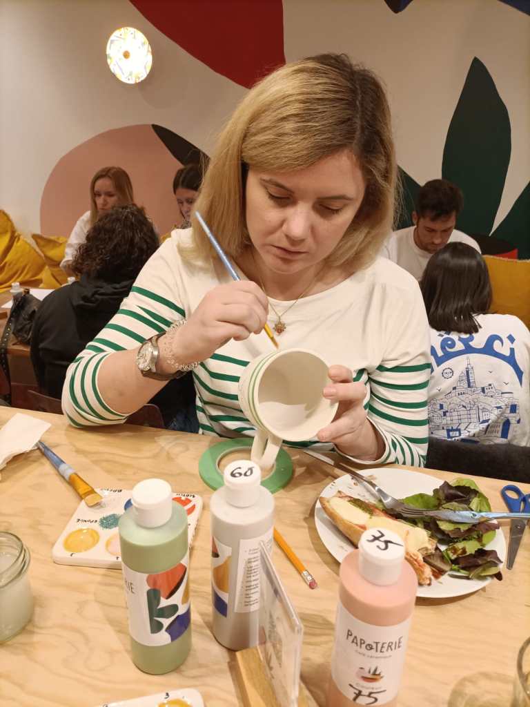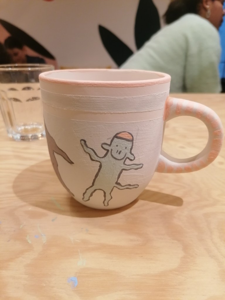 Prix : entre 8 et 70 euros pour les objets à peindre, et une carte de restauration simple et un peu chère pour ce que c’est mais bon les cappuccinos et les gâteaux sont validés donc ça passe.