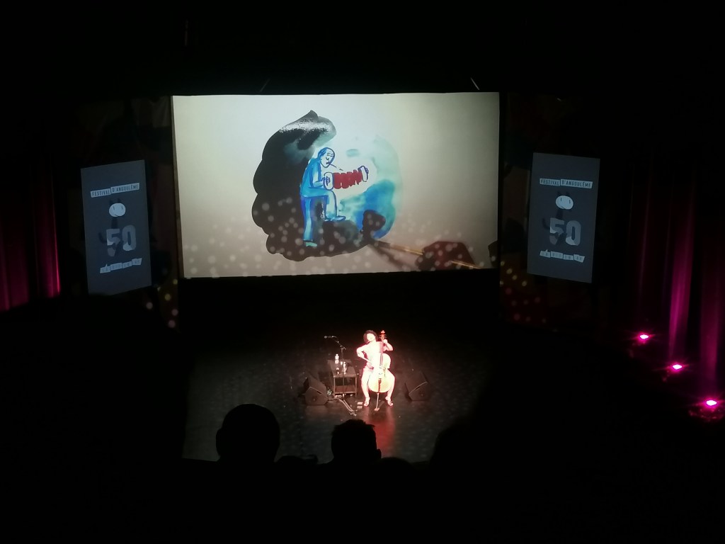 - un concert de jazz dessiné : on savait pas trop à quoi s’attendre, et bien c’était incroyable ! L’alliance du violoncelle joyeux de Ana Carla Maza et de l’aquarelle colorée de Aude Picault a donné un superbe spectacle.