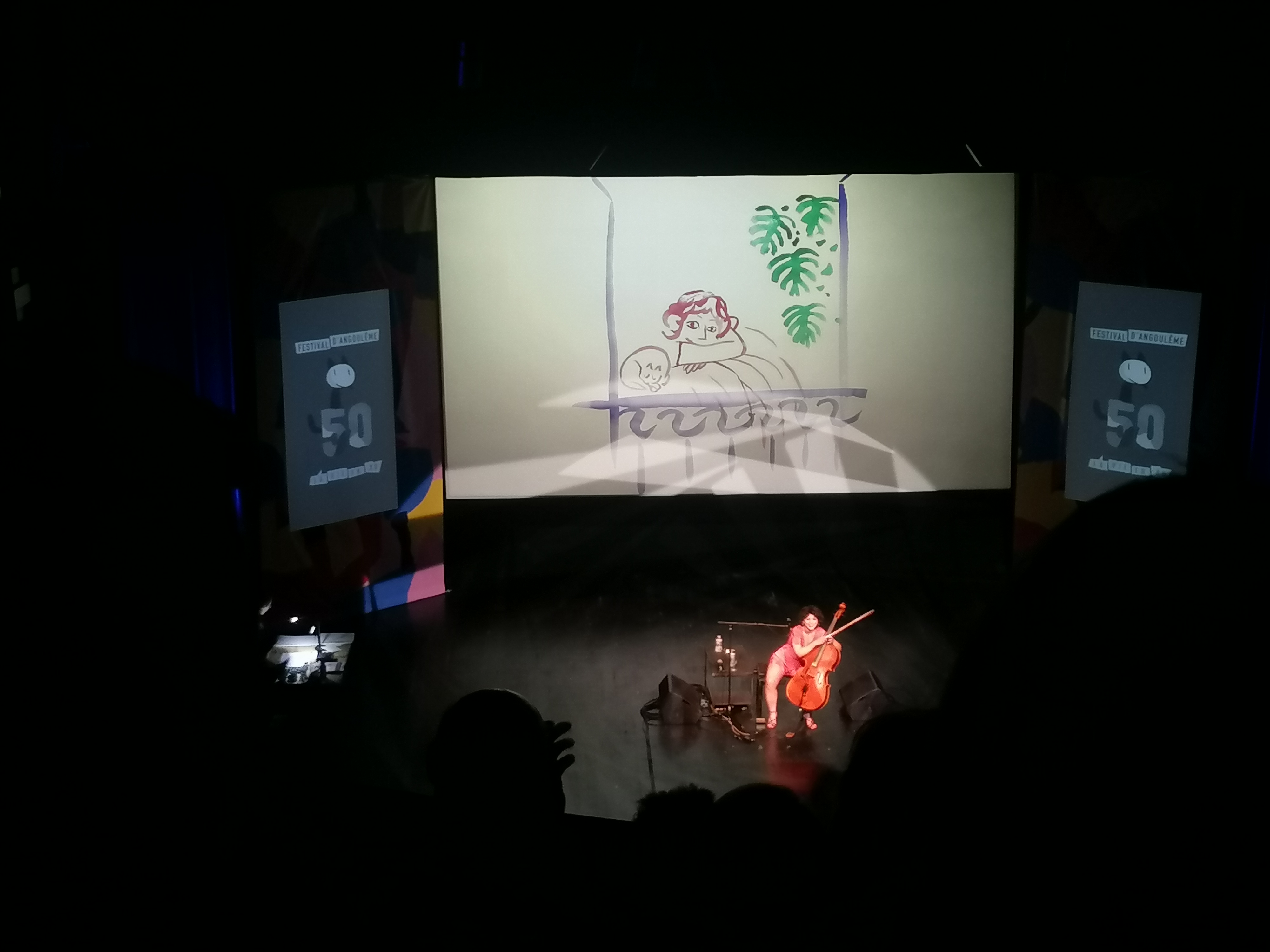 - un concert de jazz dessiné : on savait pas trop à quoi s’attendre, et bien c’était incroyable ! L’alliance du violoncelle joyeux de Ana Carla Maza et de l’aquarelle colorée de Aude Picault a donné un superbe spectacle.