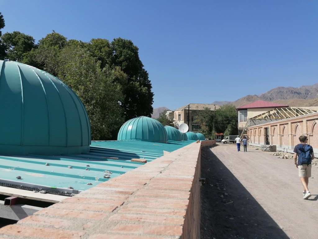 Suite à cette visite on décide de se diriger à pieds vers le centre, sous 150 000 degrés de soleil, accentués par la réverbération des rayons sur l’immensité des trottoirs et des routes. Les ladas ont l’air encore plus petites ici que les routes sont immenses et, il faut l’avouer, un peu désertées. Le long de cette petite marche, nous faisons plusieurs escales : le Mausolée de Momine Khatun, lui aussi fermé ; le marché aux légumes et autres choses ; et une pause déjeuner bien méritée.