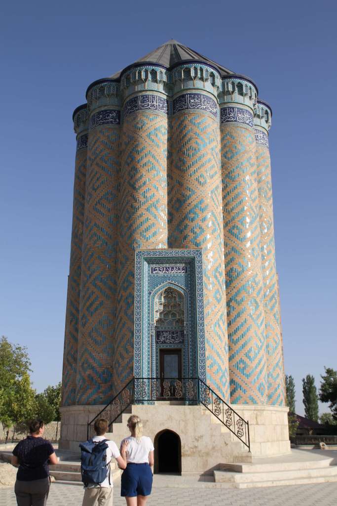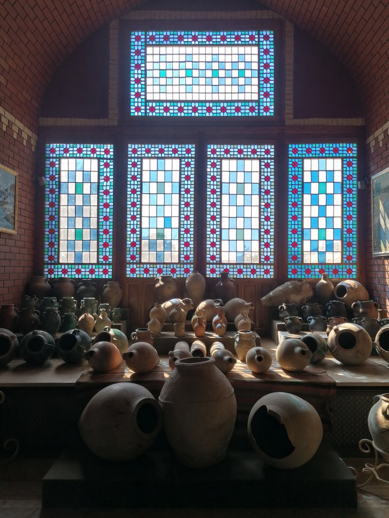 Après une bonne nuit de sommeil et un petit déjeuner ma foi correct, c’est parti pour l’aventure et la découverte ! Ça tombe bien, notre première visite est juste à côté de l’hôtel : le Mausolée de Noah. Très joli, rénové certainement récemment, mais malheureusement fermé et sans indication. Ce qui s’apparente à une mosquée géante est en cours de construction juste à côté. Et, au loin, une sorte de forteresse nous fait de l’œil : la balade autour des remparts vous donnera un panorama de la ville où le vide semble régner ; le musée contient des artefacts plus ou moins anciens retrouvés dans les environs.