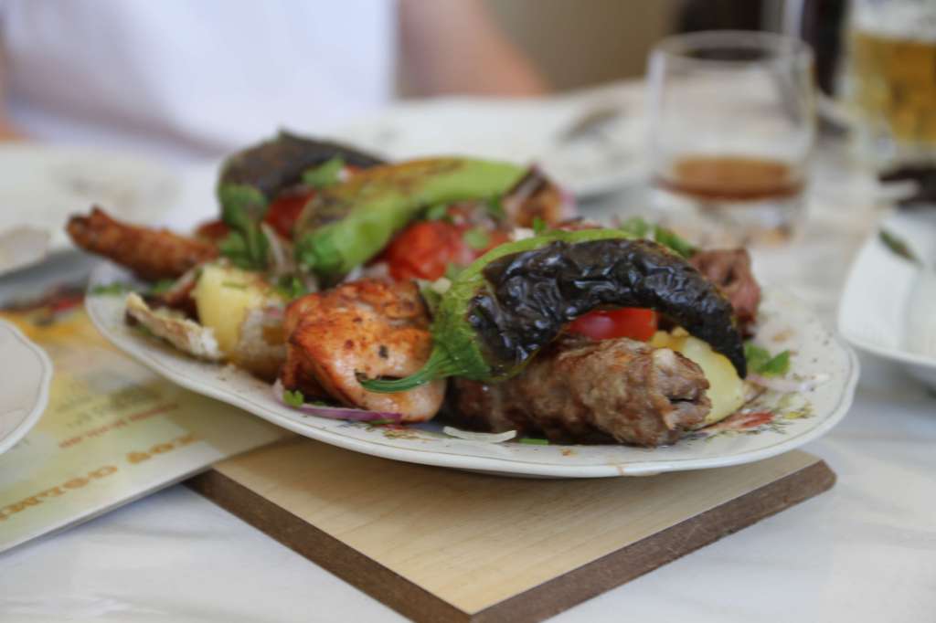 On termine la soirée au restaurant panoramique de l’hôtel Tebriz d’où nous avons une vue imprenable sur la ville. On est les seuls clients de 18h à 21h environ et nous sommes à de nombreuses reprises un peu perdus en terme de communication avec notre serveur, ce qui ne nous empêche pas de profiter d’un apéritif 100% azerbaidjanais (fromage frits et fumés au citron, dushbere frits à la mayonnaise… Et bien sur, de la bière du Nakhitchevan). Pour information, les « souvenirs » disponibles à l’accueil de l’hôtel sont probablement les seuls que vous verrez lors de votre séjour dans ce territoire autonome : ils sont un peu vieux mais bon…