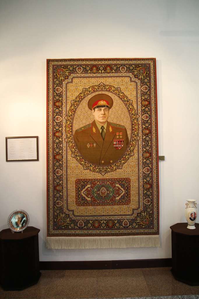 Une fois sustentés, on décide de découvrir l’une des principales attractions de la ville, le bijou de Nakhitchevan-city, j’ai nommé, bien évidemment, le musée dédié à Heydar Aliyev, père de la nation. Dans ce bâtiment majestueux, une collection d’objets ayant appartenu au grand leader ainsi que de nombreux souvenirs de sa vie sont exposés, le tout présentés d’une façon assez lunaire par une jeune guide toute mignonne qui parle même anglais. A ne surtout pas manquer ! Juste à côté du musée Heydar Aliyev, vous trouverez (ou pas d’ailleurs, car en vrai c’est quasiment impossible de le repérer) le musée du tapis du Nakhitchevan. Moins imposant que son cousin bakinois, il présente quelques belles pièces qu’il est intéressant de découvrir. Malheureusement, pas de guide anglophone cette fois, et aucun magasin de souvenirs à l’horizon.