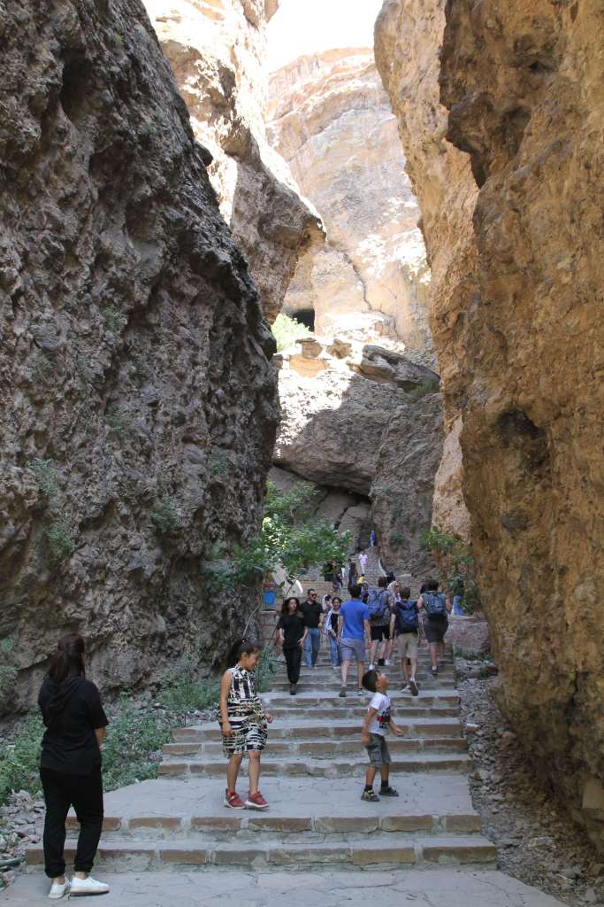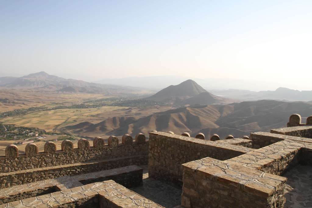 On reprend ensuite la même route pour revenir à la capitale et on s’arrête en chemin pour notre dernière excursion de la journée, et pas des moindres : la Forteresse Alinja, véritable bijou du Nakhitchevan. Caché dans la montagne, ce monument surnommé le « Machu Picchu du Caucase » (bon, c’est peut-être un peu exagéré mais l’idée est là) est en réalité une reconstruction récente à l’emplacement de l’ancienne forteresse médiévale. C’est vraiment LE site à découvrir au Nakhitchevan et donc à ne manquer sous aucun prétexte, même si, comme on est le 14 août, et que, comme indiqué précédemment, il fait très chaud dans cette région en été, on manque de mourir de déshydratation lors de la marche qui nous mènera jusqu’au sommet (1500 marches quand même). Prévoyez donc bien de l’eau en quantité suffisante car même en fin d’après-midi, on aurait bien pu mourir à Alinja comme le personnage du roman de Jean-Christophe Rufin ! Enfin, si c’est possible, je vous conseille d’y aller pour le lever ou le coucher du soleil qui donne à la montagne des couleurs plutôt pas mal.