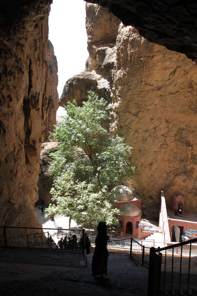 La deuxième journée est de loin la plus chargée en terme d’aventures et de visites. On fait appel à Abulfez, le chauffeur de taxi qui nous avait déposé à l’hôtel dès notre arrivée à l’aéroport. Un conseil : quand vous rencontrez un chauffeur sympathique et qui vous fait payer un prix à peu près normal, gardez-le ! Il n’y a rien de pire que de devoir négocier chaque étape d’un voyage, surtout quand on est un groupe et que tout le monde n’a pas la même philosophie sur la « taxe touriste » bien souvent imposée aux visiteurs. Premier arrêt dans la matinée : la Grotte des 7 Dormants. Derrière cette curieuse appellation se cache un lieu de pèlerinage assez impressionnant, creusé à même la montagne et où de nombreux Azerbaïdjanais viennent se recueillir et y passer une journée en famille. Un endroit qu’on a failli manquer car les photos sur internet ne lui rendent pas grand hommage, mais, sur le conseil de notre chauffeur (merci Abulfez !), on a décidé d’aller y faire un tour quand même, et grand bien nous en a fait. L’ascension des grottes est assez sportive mais la balade en ce début de matinée reste très agréable.