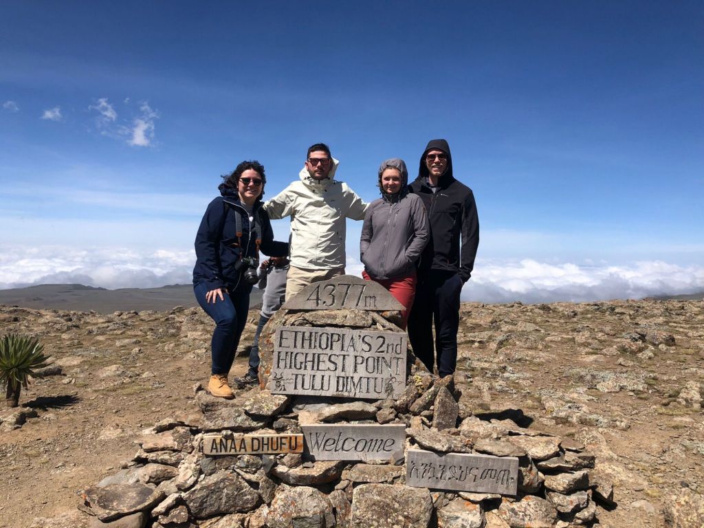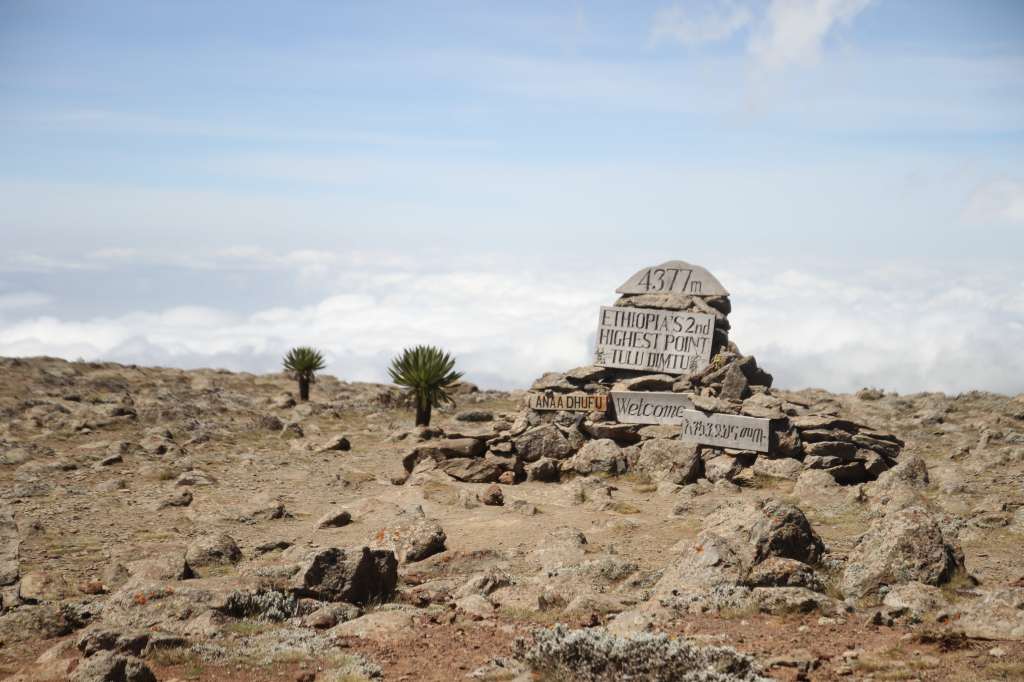 Pour le deuxième jour de notre exploration des Bale Mountains, cette fois ci nous partons à l’ascension du deuxième plus haut pic d’Éthiopie, Tulu Dimtu, situé à 4377m d’altitude… Mais en voiture ! Malheureusement, même si nous étions prêts à en découdre avec la montagne, le chemin est trop long et compliqué pour monter à pieds (et puis, puisqu’il y a une route, pourquoi s’embêter ?). Nous sommes un peu déçus car même si nous ne sommes pas de gros randonneurs nous aurions aimé pouvoir faire semblant de grimper un peu, mais, si on est honnêtes, on ne serait jamais arrivés aussi haut à la seule force de nos petites jambes et de nos petits poumons peu habitués à ces hauteurs !