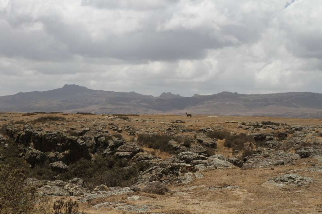 Nous rencontrons notre guide Abdissa et démarrons notre visite de la région dès notre arrivée en commençant par une longue balade à travers le plateau Sanetti du parc naturel des Bale Mountains. Nous avons vite le souffle court car ici nous nous trouvons à plus de 3000m d’altitude : ça nous change des 130 mètres en dessous du niveau de la mer du Danakil ! Le parc fait 2150km2 et on y trouve 5 zones de végétations différentes, 80 espèces de mammifères, 300 espèces d’oiseau et 1700 espèces de plantes. Notre guide nous explique tout de la faune et de la flore locales en précisant chaque espèce endémique (la formule « it’s endemic » est tres rapidement devenue l’hymne de ce séjour). Il nous aide à repérer les espèces emblématiques : le loup éthiopien (qui ressemble à un renard, endémique), le Melelik bushbuck (une antilope endémique), le Mountain nyala (is it endemic ?), sans parler des souris, lapins, phacochères et autres bestioles qui se baladent librement dans le parc.