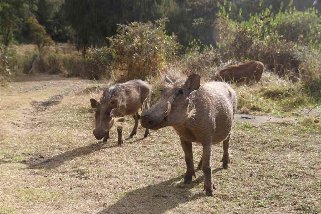 C’est en tous cas un véritable bonheur de se promener au cœur de cette nature et de pouvoir profiter de l’air frais. Près de 4 heures de balade plus tard, nous retournons à proximité du village de Dinsho où se trouve notre camp pour cette fois ci profiter du calme de la forêt. Les arbres sont immenses et notre chemin ne croise que celui des cerfs et des phacochères. Le soir, un bon repas, quelques bières et un feu de camps nous attendent : notre guide sait nous faire plaisir ! Alors que la nuit tombe nous allons nous coucher au chaud dans notre tente, à peine perturbés par les singes Colobus qui viennent nous renifler pendant notre sommeil…