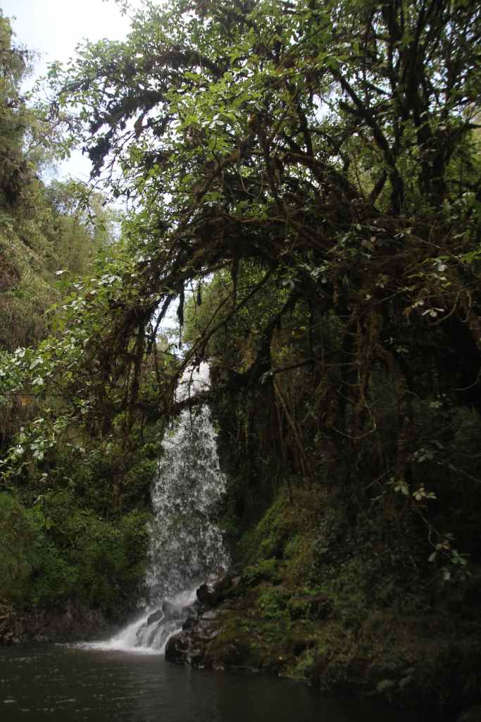 Heureusement, la journée n’est pas finie et nous aurons l’occasion de faire plusieurs petites balades histoire de nous dégourdir les pattes, notamment à travers la forêt Harenna pour aller voir des cascades, des oiseaux, ainsi qu’un joli point de vue où a été construit un monument en mémoire du fondateur du parc. Ce dernier a perdu la vie en 2018 en tentant de sauver le parc d’un grand incendie provoqué par une intervention humaine. L’après midi est aussi l’occasion de nous restaurer dans un petit village, un repas frugal car nous sommes en période de ramadan, à base d’épinards, de miel maison et d’enjara, cette sorte de crêpe éthiopienne qui accompagne tous les plats !