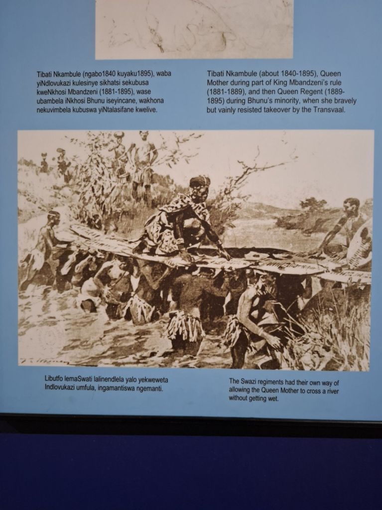 Le guide nous raconte ensuite qu’à la mort de la Reine régente en 1925 (la grand mère de Sobhuza II), la nouvelle « Reine-mère » devient donc la mère de Sobhuza II. Le roi George vient à cette occasion en visite dans le pays et offre des fleurs à la nouvelle reine mère, qui ne sait pas quoi faire de ce drôle de cadeau et jette les plantes par terre, tout en se demandant pourquoi le roi d’Angleterre n’a pas offert un bien de valeur comme une vache ou un poulet.