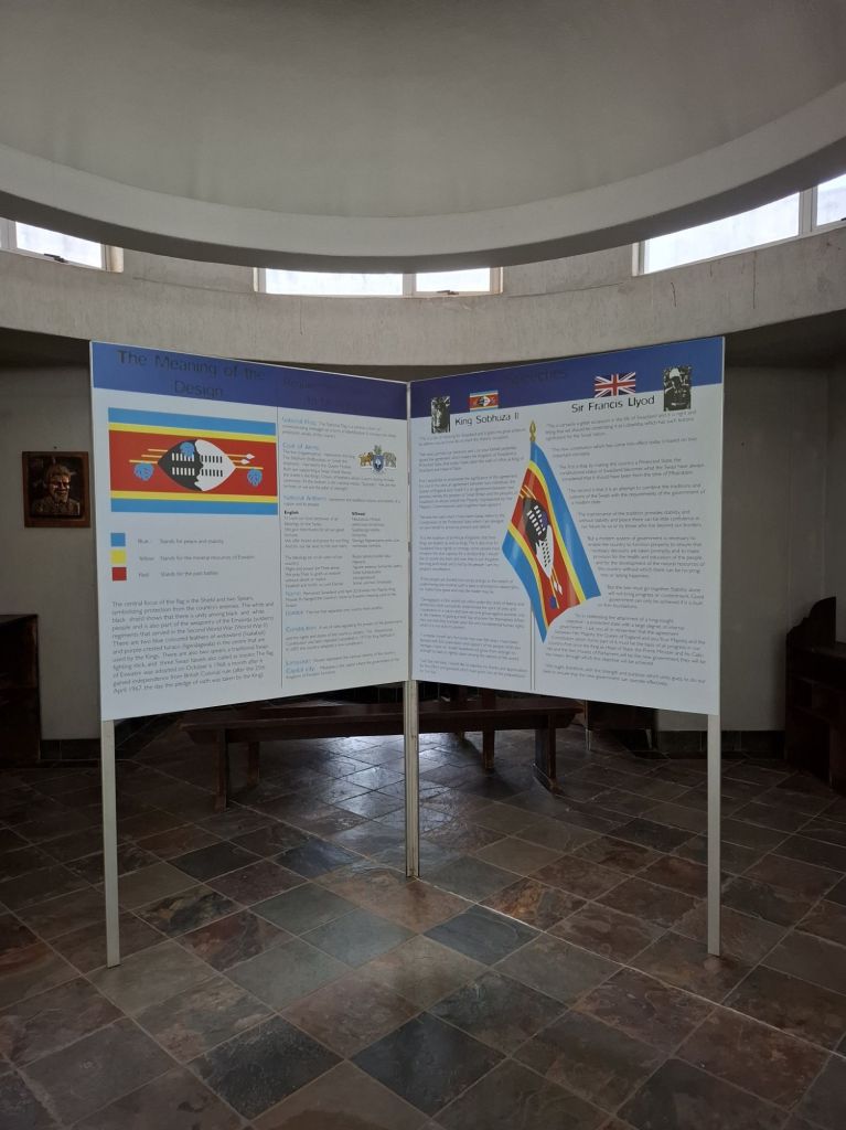 Une fois le ventre rempli, notre découverte de Mbabane a commencé par… une virée à Lobamba ! Située à environ 30 minutes de route de la capitale administrative, Lobamba est la troisième ville du pays en terme de population (environ 12 000 habitants contre 105 000 à Mbabane) et la capitale « royale et législative » (rien que ça !) du pays. C’est là bas que se trouve le Parlement donc, mais aussi le Eswatini National Museum. Attention, ici comme à Windhoek, ça ferme tôt et à l’heure donc mieux vaut arriver de bonne heure (pas comme nous à 15h quoi…). Le musée présente de nombreuses salles plus ou moins intéressantes avec, entre autres, des pièces archéologiques, des costumes et des instruments traditionnels, mais aussi (ce que j’ai préféré) des photos de l’histoire coloniale et contemporaine accompagnée d’explications (miracle : on apprécie d’autant plus que le Musée de l’indépendance à Windhoek n’a quasiment aucun texte explicatif !).