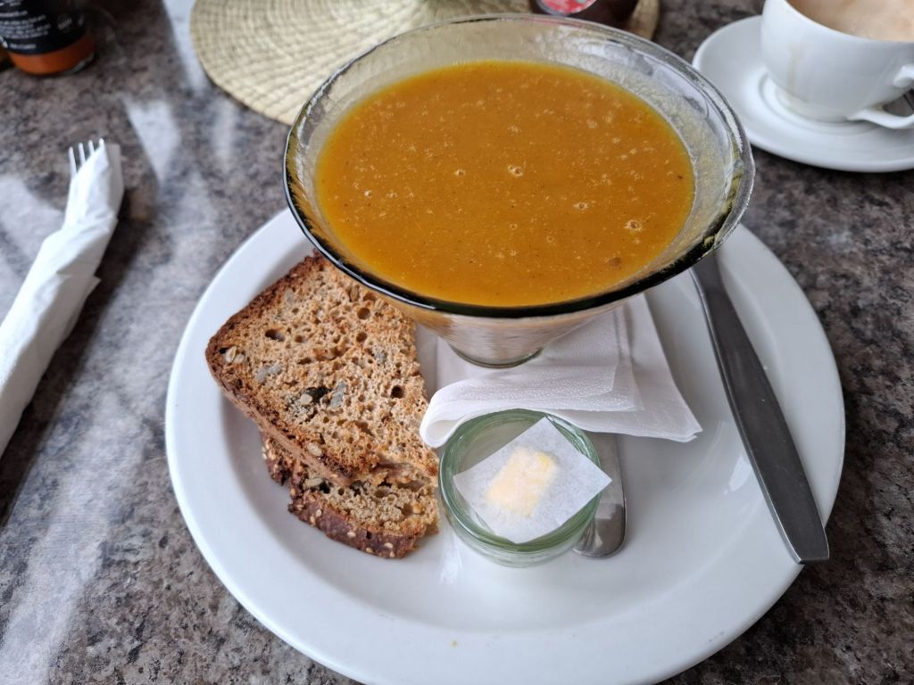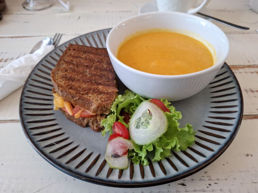 Avant toute escapade, une règle s’impose : pas d’aventure sans ventre plein ! On profite d’une petite grasse mat’ avant de rejoindre Ana pour déjeuner dans un de ses lieux préférés de la capitale eswatinienne : le Sugar Snap Café. L’endroit est charmant avec une décoration toute mignonne et une carte présentant des plats simples et bons du genre sandwich et soupe.