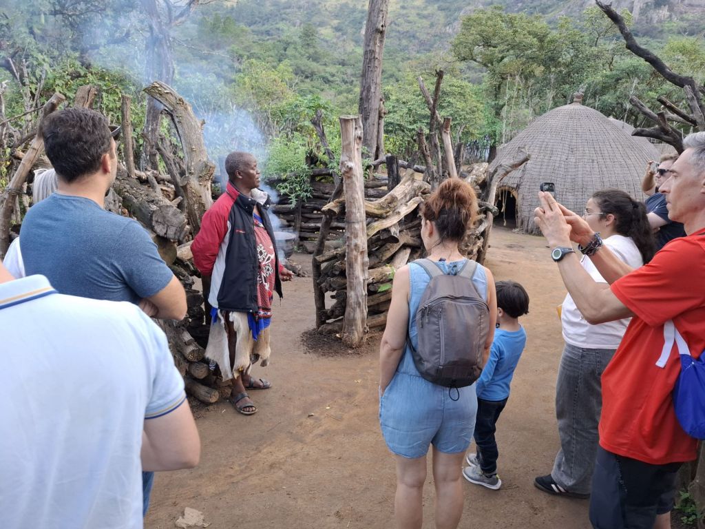 Pour notre deuxième jour de visite en Eswatini nous décidons de nous plonger un peu plus dans les traditions locales en nous rendant au Mantenga Nature Reserve and Cultural Village. Ici on peut découvrir grâce à un guide la structure du village traditionnel dans lequel chaque maison a une fonction particulière. Déjà, si le chef de famille a plusieurs femmes, chacune doit pouvoir bénéficier de son propre espace. Dans le village, les hommes et les femmes vivent ensuite séparément : les femmes se réunissent dans l’espace cuisine pour préparer la nourriture alors que les hommes se réunissent dans l’espace salle de réunion pour discuter entre eux. C’est l’occasion de faire l’éducation des plus jeunes sur les taches et les rôles de chacun.