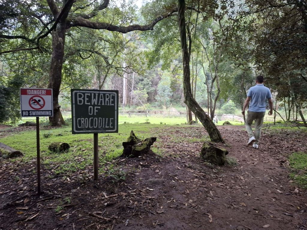 Avant de partir, nous faisons la petite balade jusqu’à la cascade du coin où on apprécie la tranquillité des lieux et les avertissements concernant la présence de crocodiles dans ces eaux… bon, pour la baignade, ce sera pour une prochaine fois !