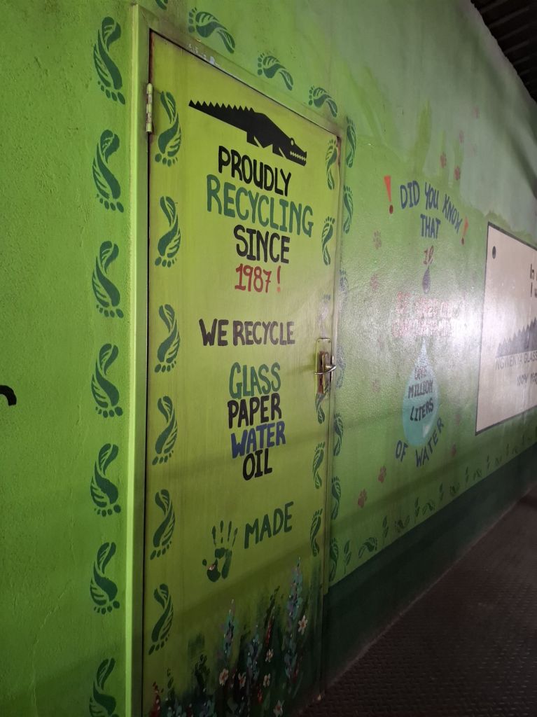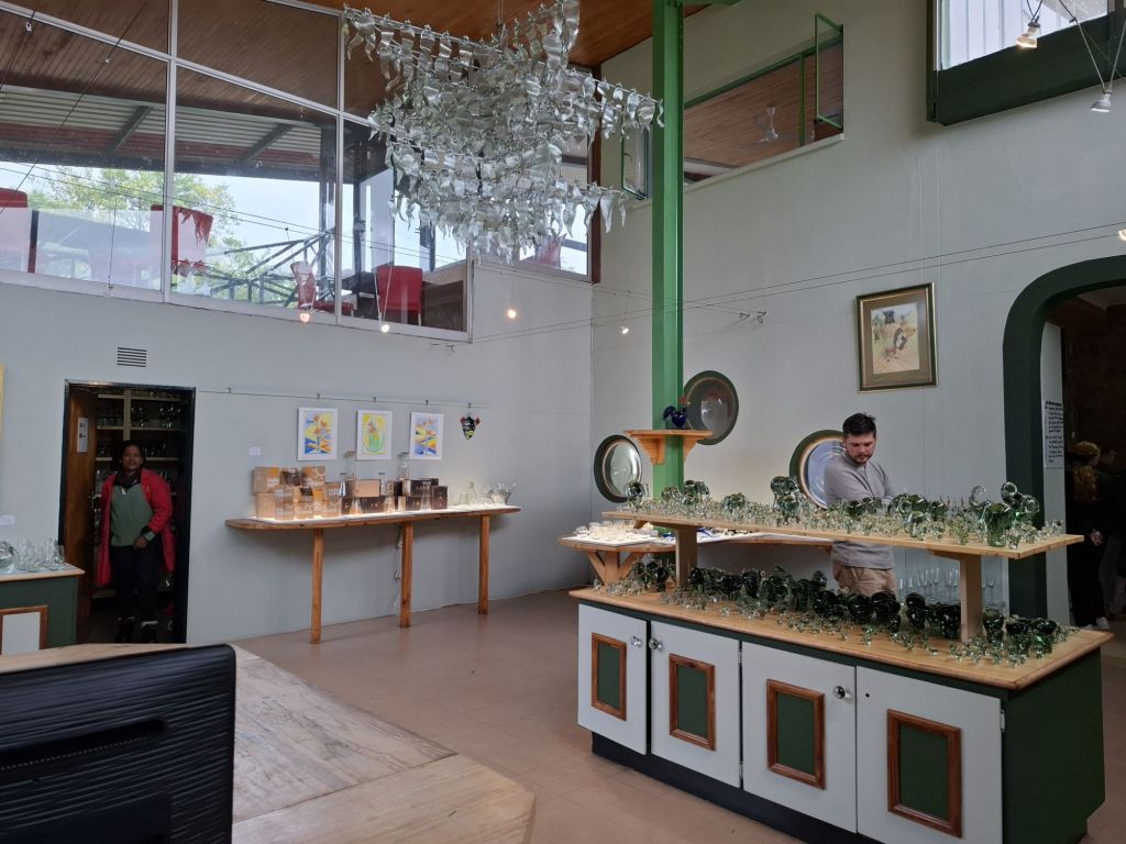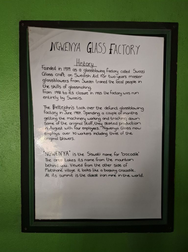 A côté de l’usine de verre, d’autres petites boutiques et ateliers forment une galerie intéressante à visiter aussi. On y trouve des souvenirs classiques des pays africains avec les animaux en bois ou les vêtements colorés (mais pas vraiment locaux), mais aussi une chocolaterie dont la spécialité est le chocolat pimenté (et ça rigole pas ça pique vraiment beaucoup !) ou des boutiques d’art et d’artisanat pour le coup 100% eswatiniennes (coup de cœur pour cette dame qui fabrique des bijoux en papiers recyclés !).