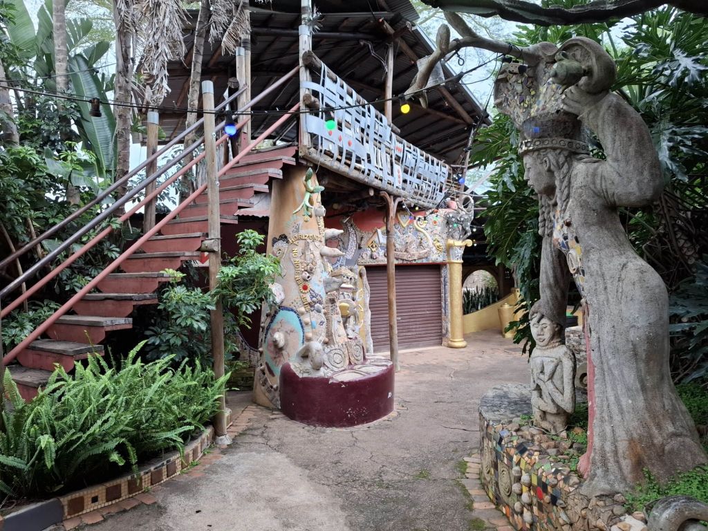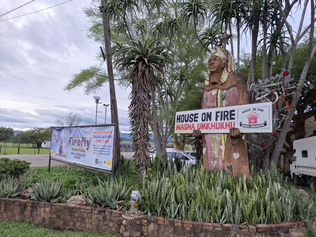 Après cette visite fort réussie et les cadeaux pour toute la famille trouvés, on rejoint Ana au House of Fire, un lieu culturel incontournable d’Eswatini. C’est ici qu’a lieu le plus grand festival de musique du pays, le Bushfire, mais aussi la majorité des événements culturels en général. Sur place se trouvent également de nombreuses boutiques et un restaurant pas mauvais du tout. C’est l’endroit idéal pour terminer cette journée riche en aventures 🙂