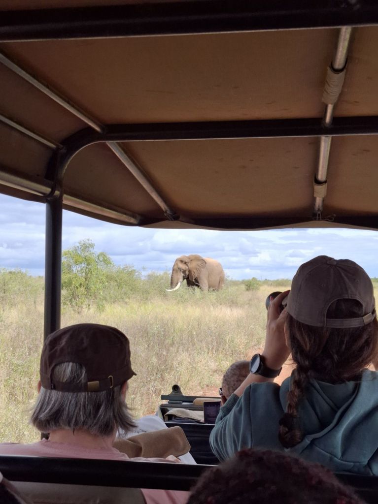 Pour notre dernier jour en Eswatini, nous partons tous ensemble faire un safari dans le Hlane Royal National Park, situé tout à l’Est du pays. Le parc abrite de nombreux animaux avec 3 différentes zones en fonction des habitudes alimentaires de chacun, les lions étant dans la 3ème zone pour éviter qu’ils ne mangent tout sur leur passage. Les « self-drive » ne sont ici pas autorisés et nous rejoignons donc un guide pour le « game-drive » du parc. L’avantage d’avoir un guide est qu’on apprend plein de choses sur les animaux et leurs particularités. Par exemple, saviez vous que les éléphants avaient un système digestif assez mauvais et ne digéraient que 40% de leurs aliments ? C’est pour cela qu’ils passent leurs journées à manger et que les autres animaux mangent leurs déjections. Miam. On apprend aussi que les dents des éléphants se remplaçant 6 fois dans leur vie au fur et à mesure de l’usure (un jeu de dents peut durer de 8 à 15 ans), et, lorsqu’il perd ses dernière dents, il ne peut plus manger et meurt alors de faim. Sinon, sur une note plus joyeuse, ses oreilles lui servent à réguler sa température. Youpi !