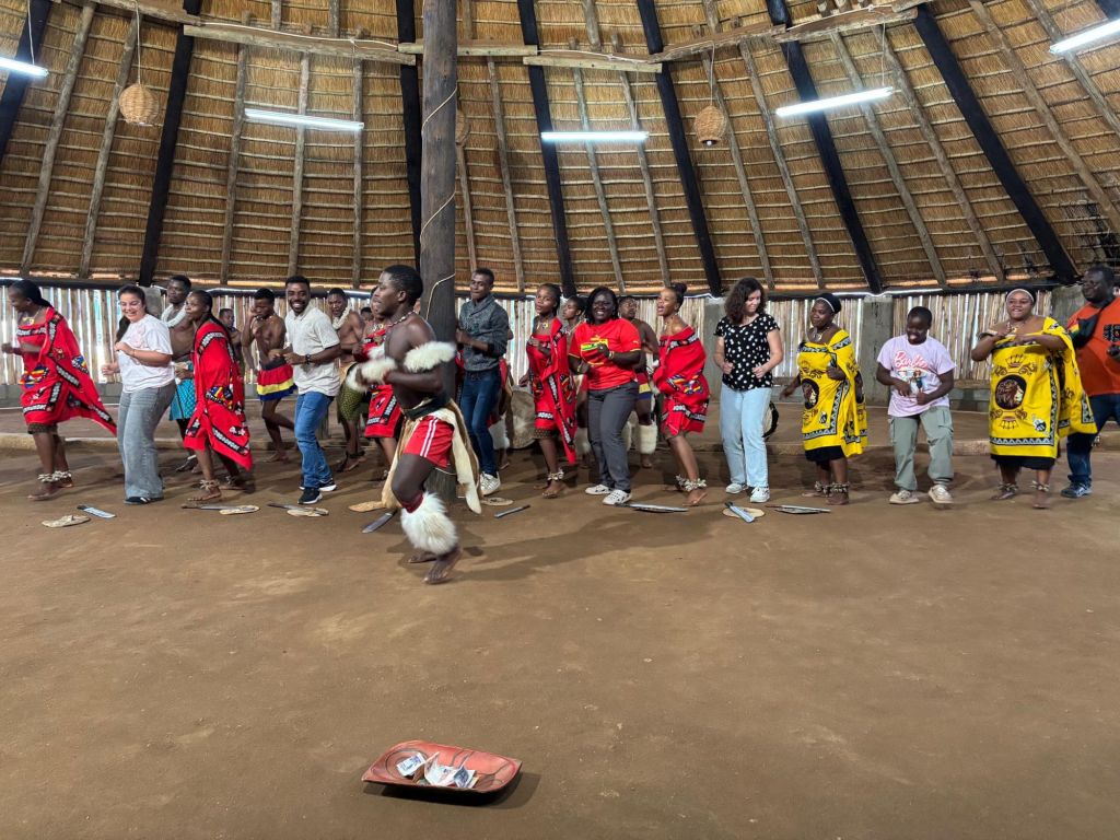 A la suite de la visite du village, nous assistons à un spectacle de danses et de chants traditionnels assez impressionnant, auquel nous sommes même invités à participer ! Un atelier ludique avec des professeurs patients face à la maladresse de certains de leurs étudiants (moi, par exemple !). Les Swatis ont un sacré lancer de jambes !