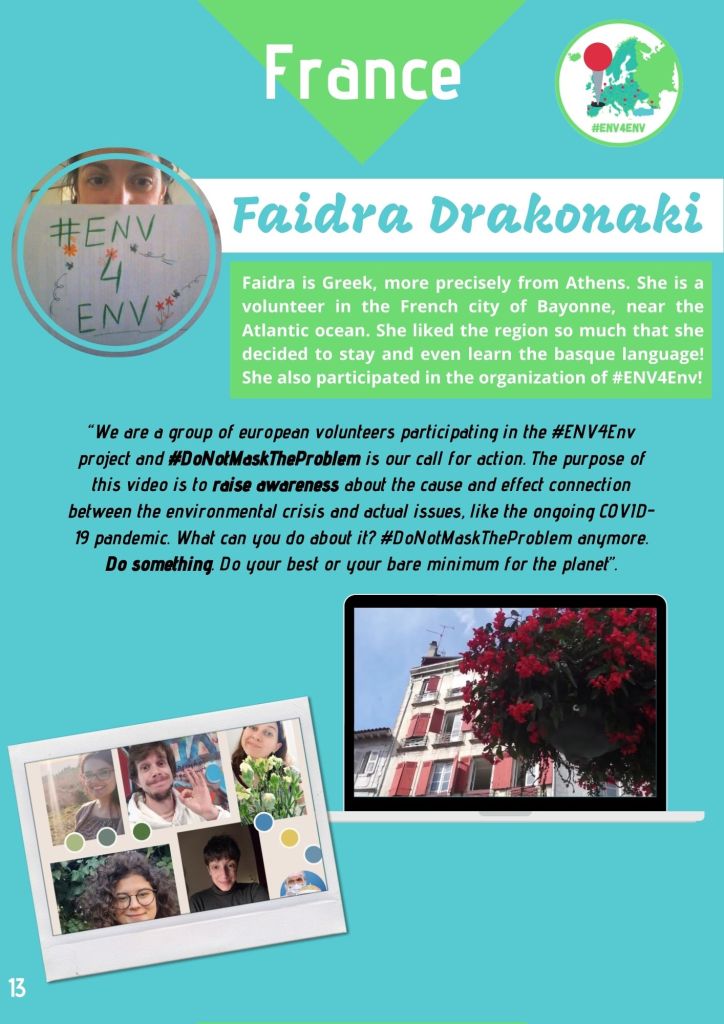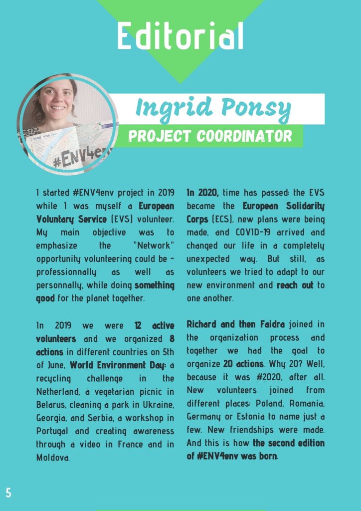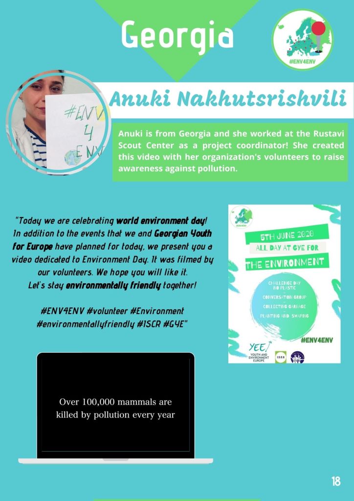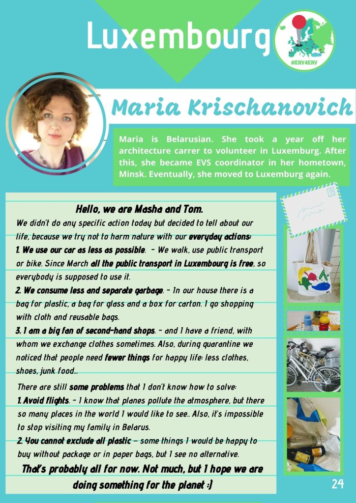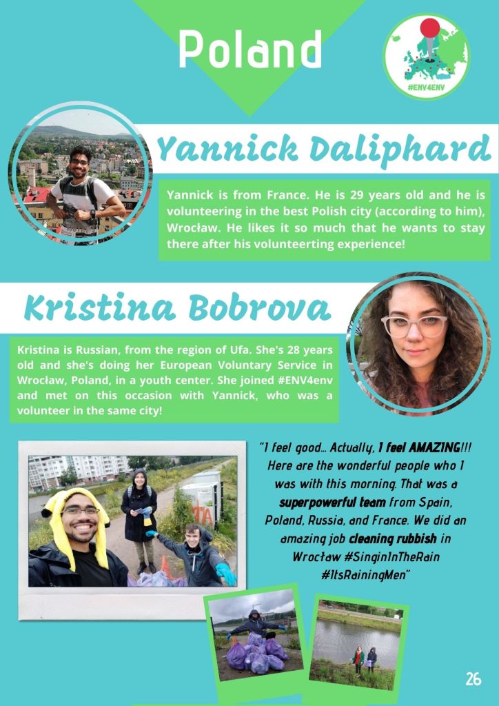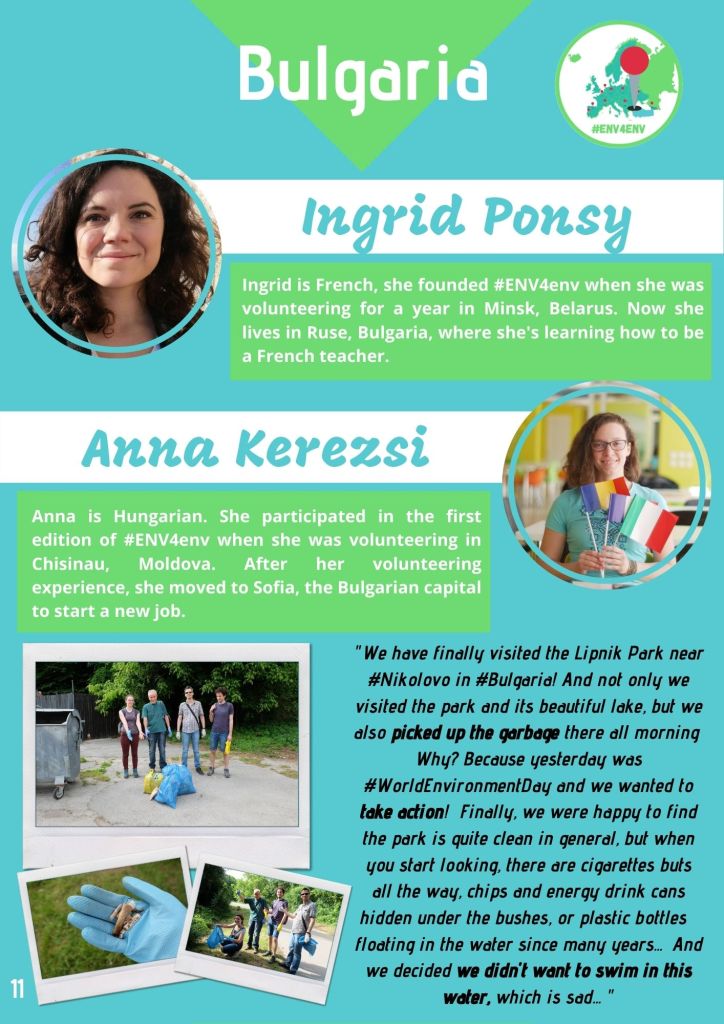 In April 2019 I created the project « European Network of Volunteers for the Environment – #ENV4Env » . The idea was to create the possibility for European volunteers, who are enrolled in different EVS (now ESC) projects all around the continent, to virtually meet each other and act together.