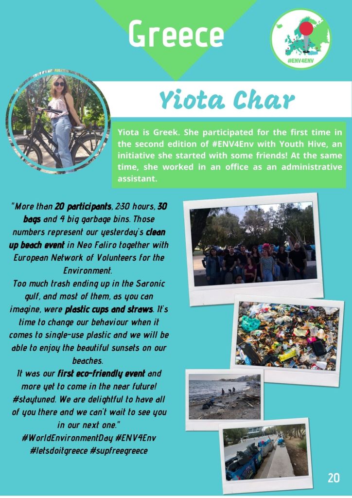 On 5th of June 2020, we made it happen again but this time, we had to add a couple of pages to the report… Following the previous template, and with the help of Carolina and Faidra, let me present you the #ENV4Env 2020 report of our 20 environmental actions all over Europe! 🙂
